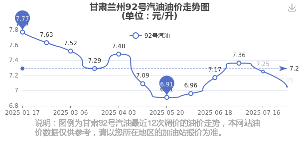 甘肅蘭州2025年汽油價格調(diào)整走勢圖