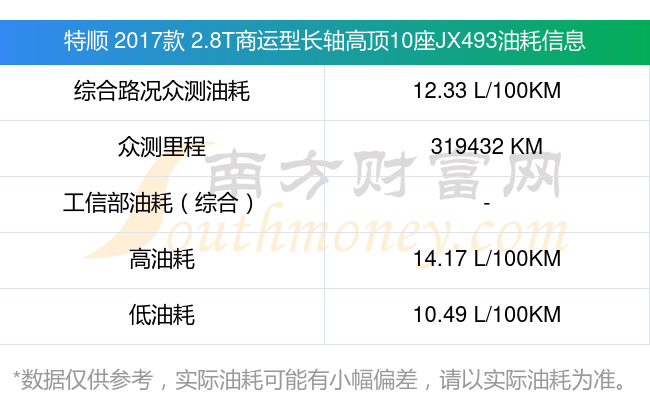 特順 2017款 2.8T商運型長軸高頂10座JX493油耗怎么樣?(10月24日)