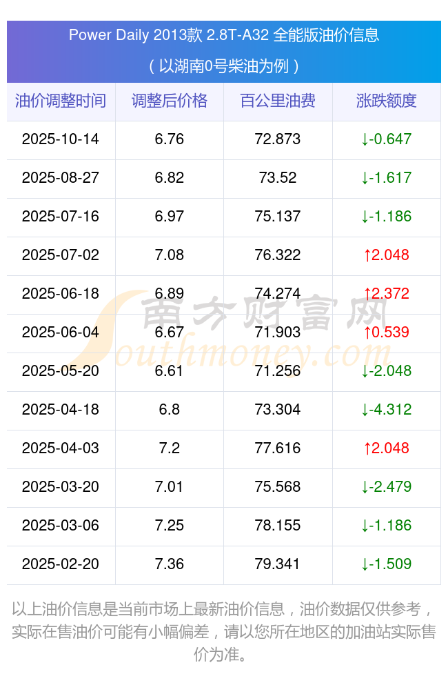 Power Daily 2013款 2.8T-A32 全能版真實(shí)油耗多少?(10月24日)92、95號(hào)汽油價(jià)格一覽表