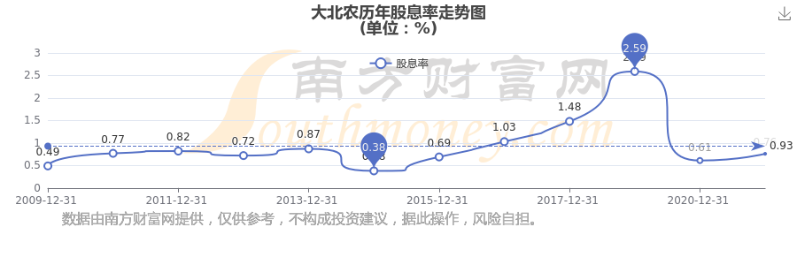 大北農(nóng)歷年股息率走勢如下圖: