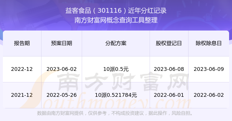 益客食品最新一次公布的分紅方案:10派0.5元。
