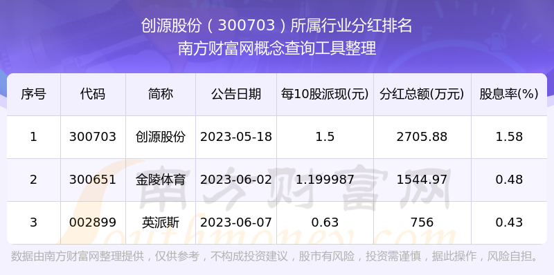 二、創(chuàng)源股份300703行業(yè)分紅排名