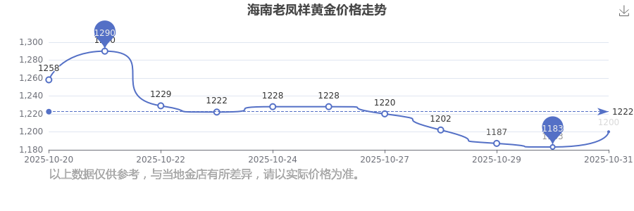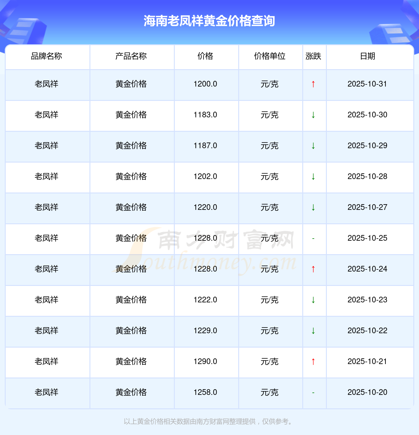 海南老鳳祥黃金價(jià)格在 2025年11月2日,其市場(chǎng)價(jià)格為 1200.0元/克。