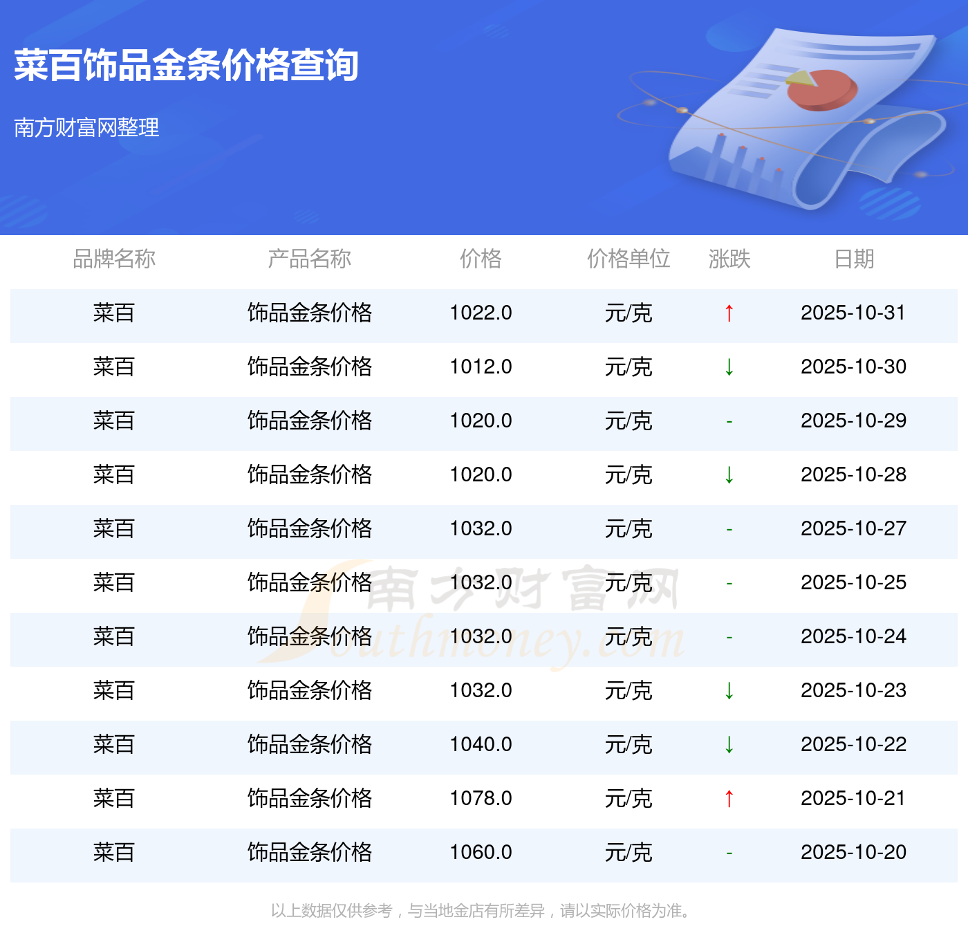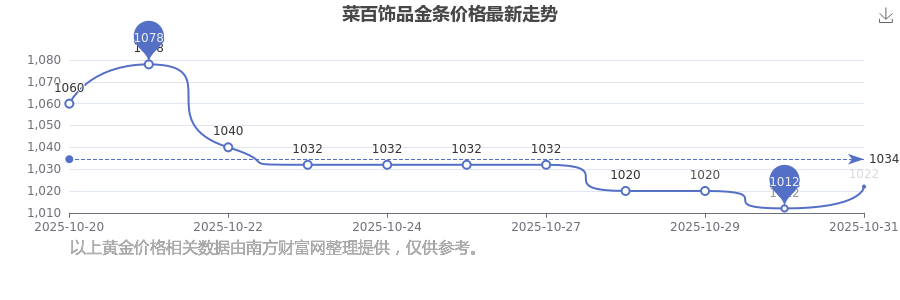 今日菜百飾品金條價格為1022.0元/克。