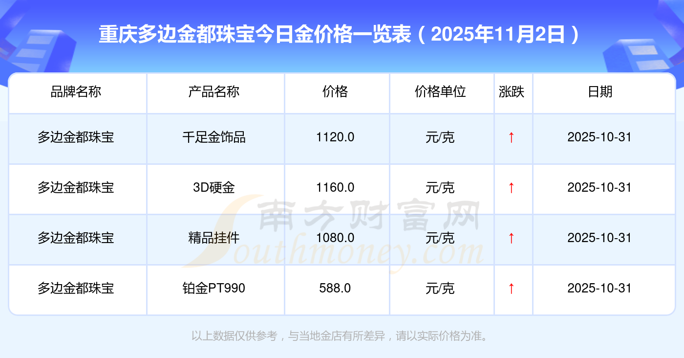 重慶多邊金都珠寶金價(jià)今日價(jià)格最新_重慶多邊金都珠寶黃金多少錢一克2025年11月2日,隨小編來了解一下詳情。