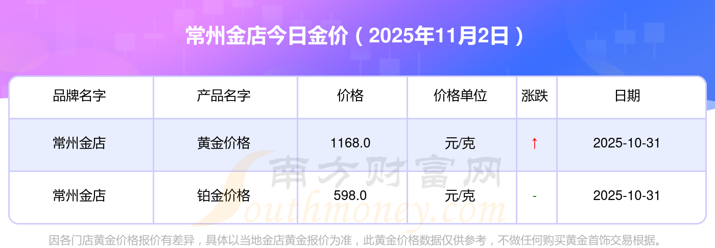2025年11月2日常州金店金價(jià)查詢:黃金價(jià)格1198.0元/克,鉑金價(jià)格650.0元/克,飾品金價(jià)(內(nèi)地)1198.0元/克,黃金飾品(香港)44660.0,鉑金價(jià)格(香港)18640.0,金條價(jià)格(香港)40080.0,金條金價(jià)(內(nèi)地)1058.0元/克,黃金價(jià)格1200.0元/克,鉑金價(jià)格560.0元/克,足金價(jià)格1200.0元/克,黃金價(jià)格1135.0元/克。