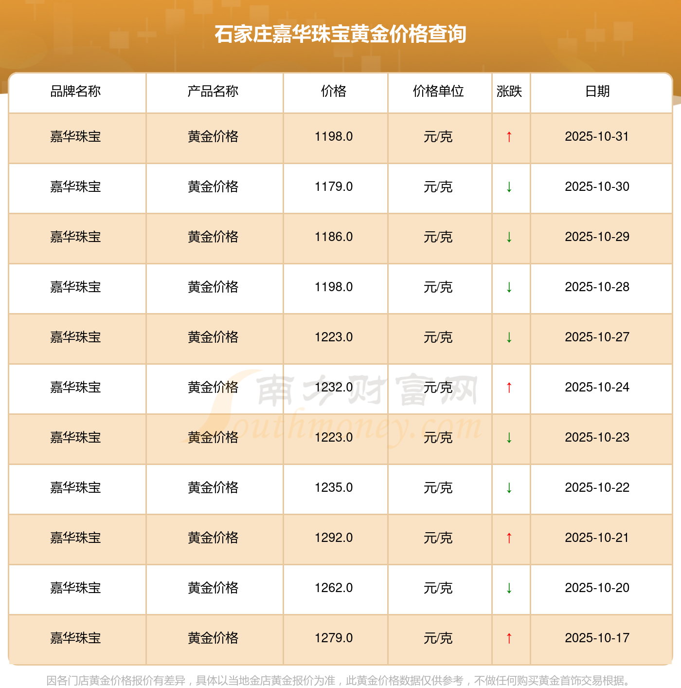今天是2025年11月2日,周大福、周大福、周大福、周大福、周大福、周大福、周大福、老鳳祥、老鳳祥、老鳳祥、周六福等各大金店品牌黃金價格最新價格如下:周大福1198.0元/克、周大福650.0元/克、周大福1198.0元/克、周大福44660.0、周大福18640.0、周大福40080.0、周大福1058.0元/克、老鳳祥1200.0元/克、老鳳祥560.0元/克、老鳳祥1200.0元/克、周六福1135.0元/克。