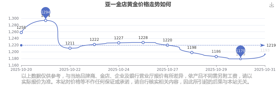 1193.0元/克是亞一金店在今日給出的 黃金價(jià)格最新價(jià)格。