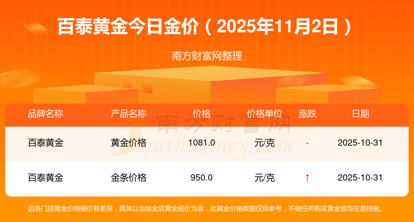2025年11月2日周大福、周大福、周大福、周大福、周大福、周大福、周大福、老鳳祥、老鳳祥、老鳳祥、周六福等各大金店品牌金條價格最新價格如下:周大福黃金價格1198.0元/克,周大福鉑金價格650.0元/克,周大福飾品金價(內(nèi)地)1198.0元/克,周大福黃金飾品(香港)44660.0,周大福鉑金價格(香港)18640.0,周大福金條價格(香港)40080.0,周大福金條金價(內(nèi)地)1058.0元/克,老鳳祥黃金價格1200.0元/克,老鳳祥鉑金價格560.0元/克,老鳳祥足金價格1200.0元/克,周六福黃金價格1135.0元/克。
