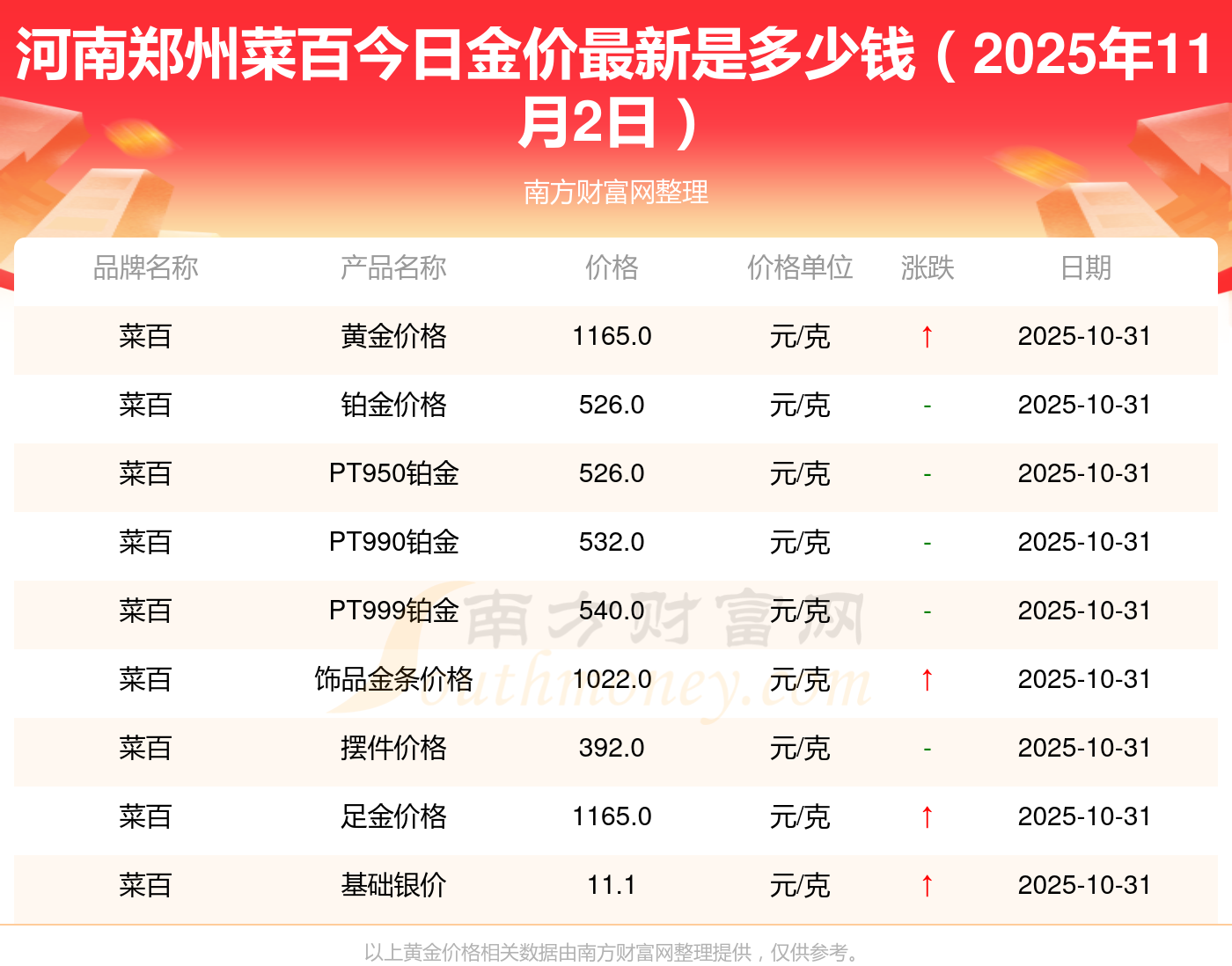 2025年11月2日菜百金條多少錢1克 現(xiàn)在河南鄭州菜百黃金價格查詢