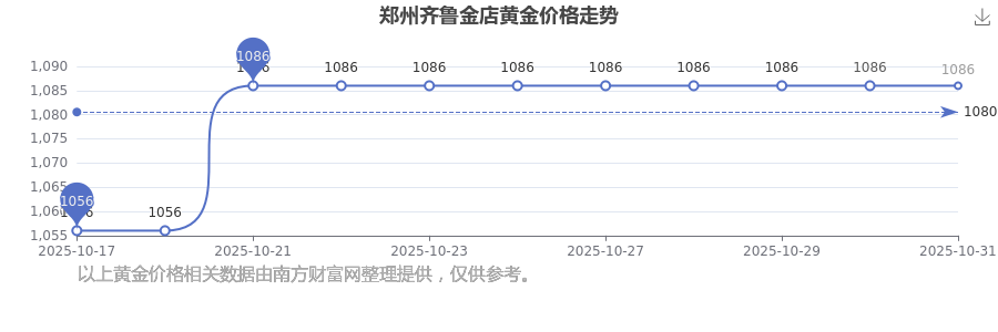 今日鄭州齊魯金店黃金價(jià)格最新價(jià)格是1086.0元/克。
