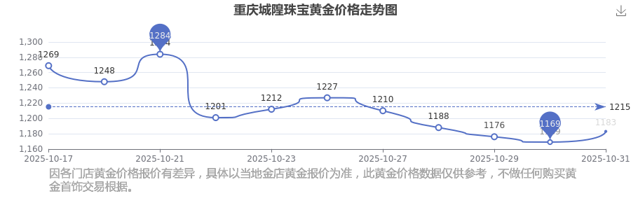 1183.0元/克的黃金價(jià)格,是重慶城隍珠寶在 2025年11月2日給出的。