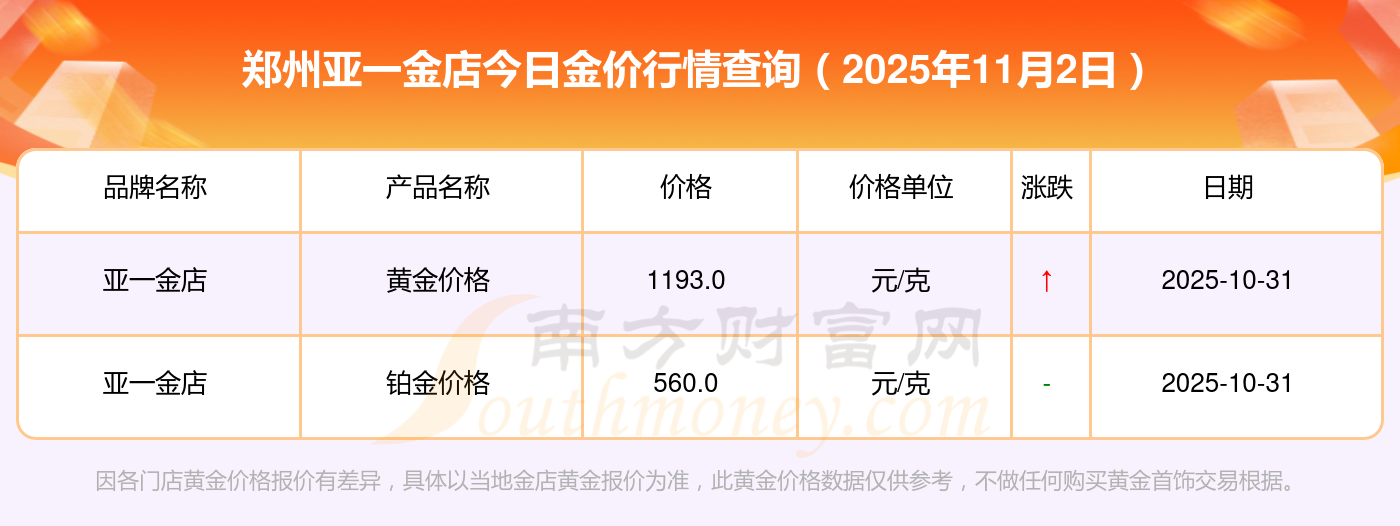 2025年11月2日鄭州亞一金店一克黃金的售價(jià)是多少:黃金價(jià)格1198.0元/克,鉑金價(jià)格650.0元/克,飾品金價(jià)(內(nèi)地)1198.0元/克,黃金飾品(香港)44660.0,鉑金價(jià)格(香港)18640.0,金條價(jià)格(香港)40080.0,金條金價(jià)(內(nèi)地)1058.0元/克,黃金價(jià)格1200.0元/克,鉑金價(jià)格560.0元/克,足金價(jià)格1200.0元/克,黃金價(jià)格1135.0元/克。
