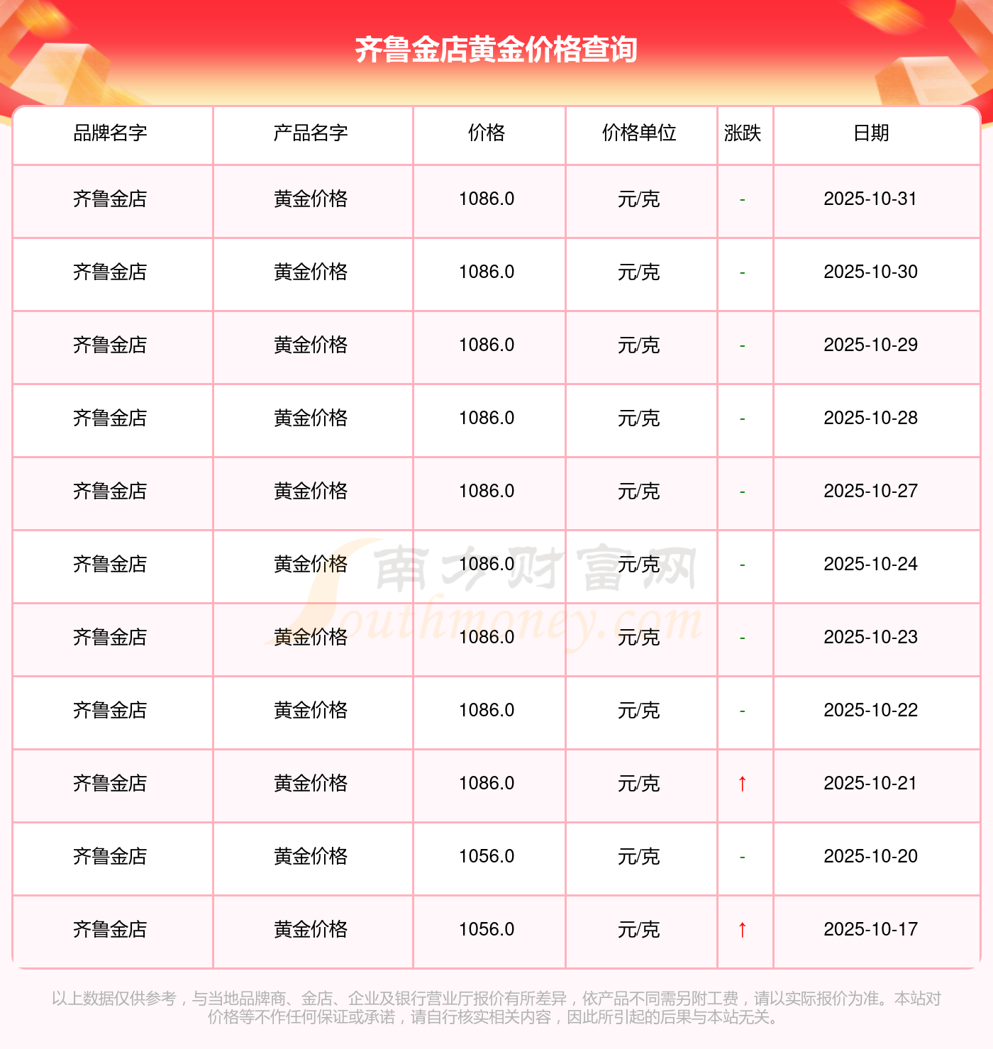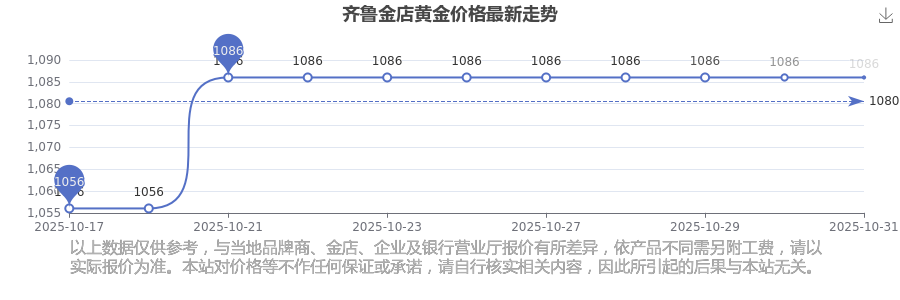據(jù)了解,今日齊魯金店 黃金價格的最新價格為1086.0元/克。