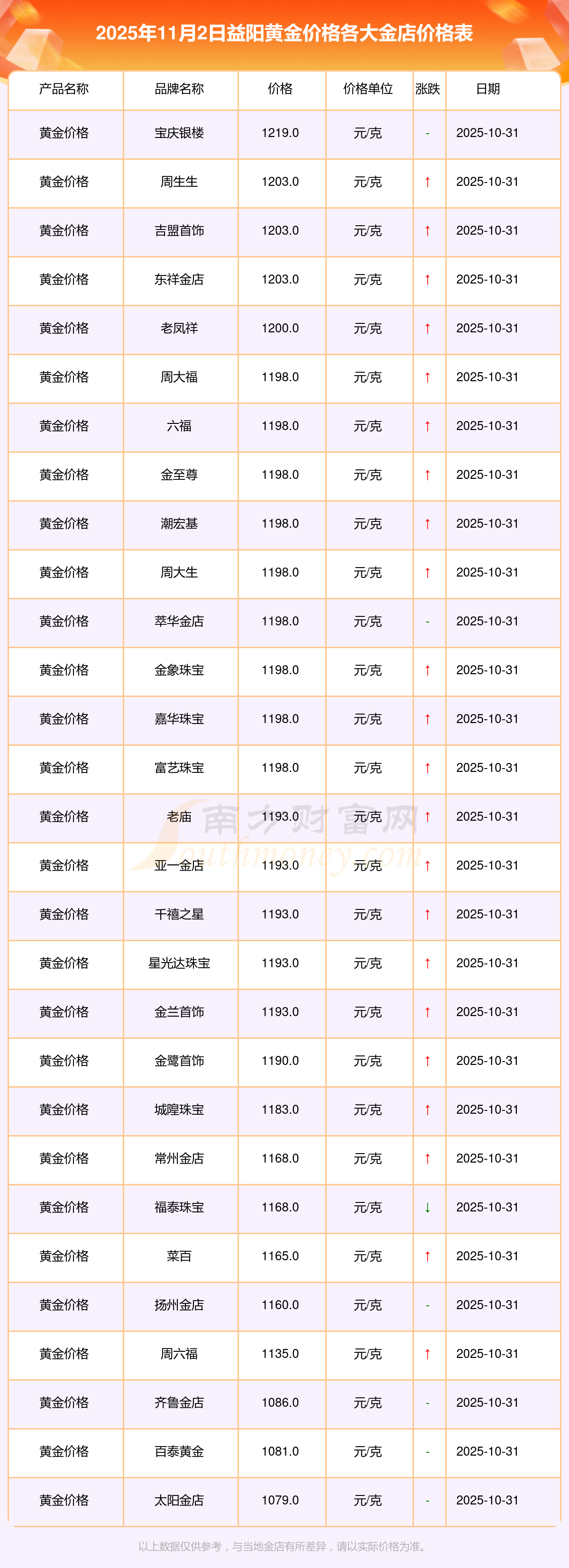 二、2025年11月2日今日益陽各金店黃金價(jià)格今天什么價(jià)格呢