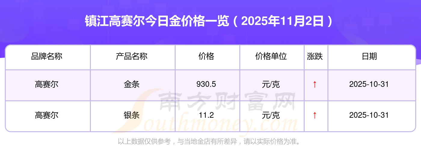 2025年11月2日高賽爾金條多少錢1克 現(xiàn)在鎮(zhèn)江高賽爾黃金價(jià)格查詢
