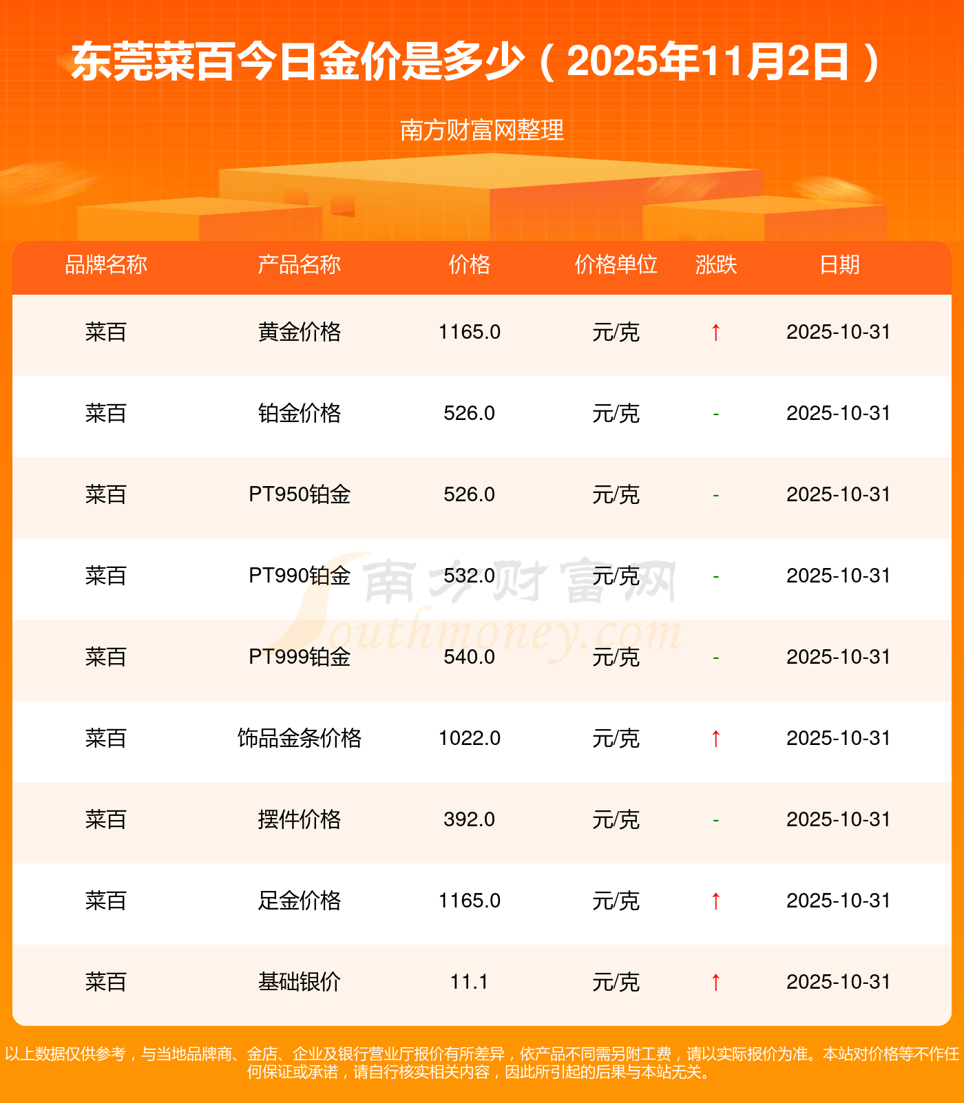 2025年11月2日東莞菜百最新價格:黃金價格1198.0元/克,鉑金價格650.0元/克,飾品金價(內(nèi)地)1198.0元/克,黃金飾品(香港)44660.0,鉑金價格(香港)18640.0,金條價格(香港)40080.0,金條金價(內(nèi)地)1058.0元/克,黃金價格1200.0元/克,鉑金價格560.0元/克,足金價格1200.0元/克,黃金價格1135.0元/克。