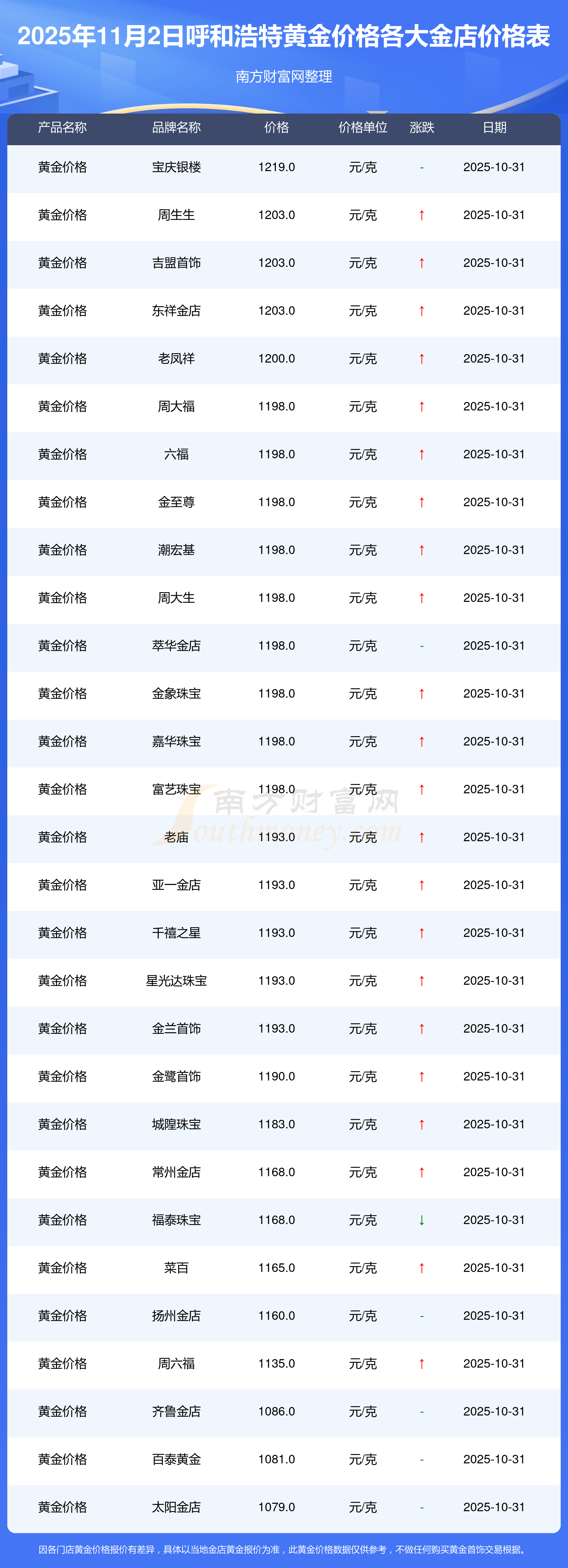 今天是2025年11月2日,呼和浩特周大福、周大福、周大福、周大福、周大福、周大福、周大福、老鳳祥、老鳳祥、老鳳祥、周六福等各大金店品牌黃金價(jià)格最新價(jià)格行情是這樣的:周大福1198.0元/克、周大福650.0元/克、周大福1198.0元/克、周大福44660.0、周大福18640.0、周大福40080.0、周大福1058.0元/克、老鳳祥1200.0元/克、老鳳祥560.0元/克、老鳳祥1200.0元/克、周六福1135.0元/克。