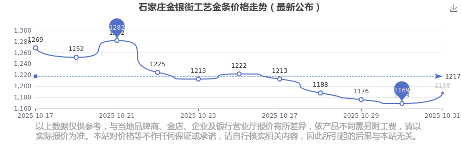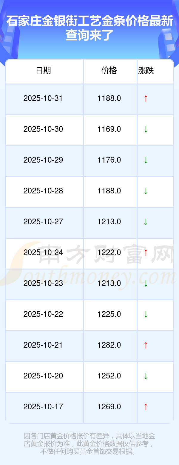 2025年11月2日這一天,石家莊金銀街的工藝金條以 1188.0元/克的價格售賣。