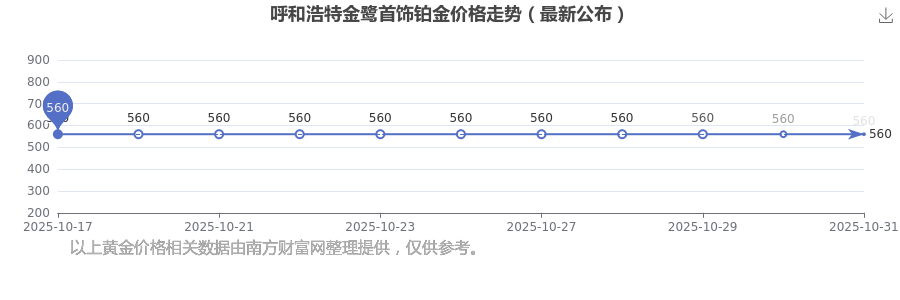 2025年11月2日呼和浩特金鷺首飾鉑金價格:560.0元/克。