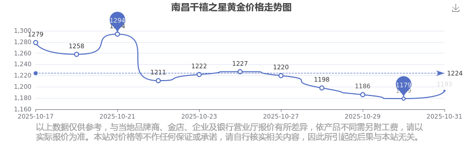 (2025年11月2日)南昌千禧之星黃金價格現(xiàn)在為1193.0元/克。