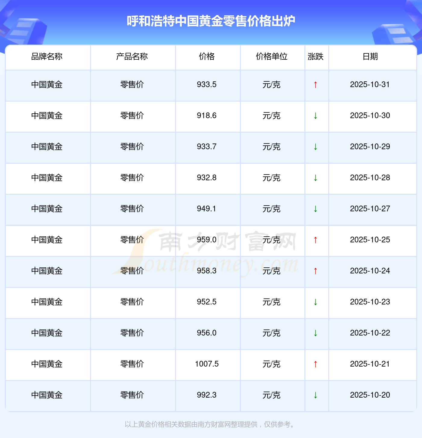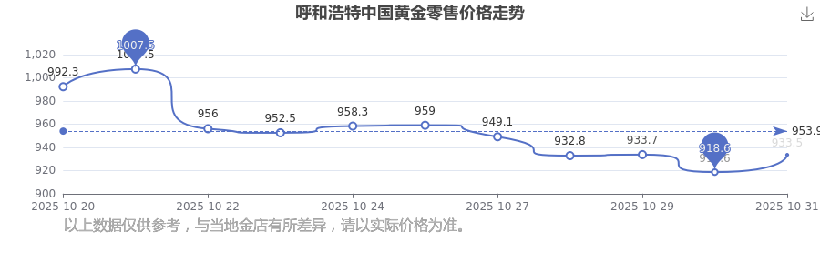 今日(2025年11月2日),933.5元/克是呼和浩特中國黃金零售價的價格標(biāo)準(zhǔn)。