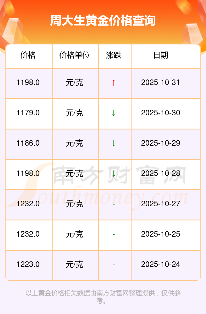 周大生 黃金價(jià)格今日最新的價(jià)位是1198.0元/克。