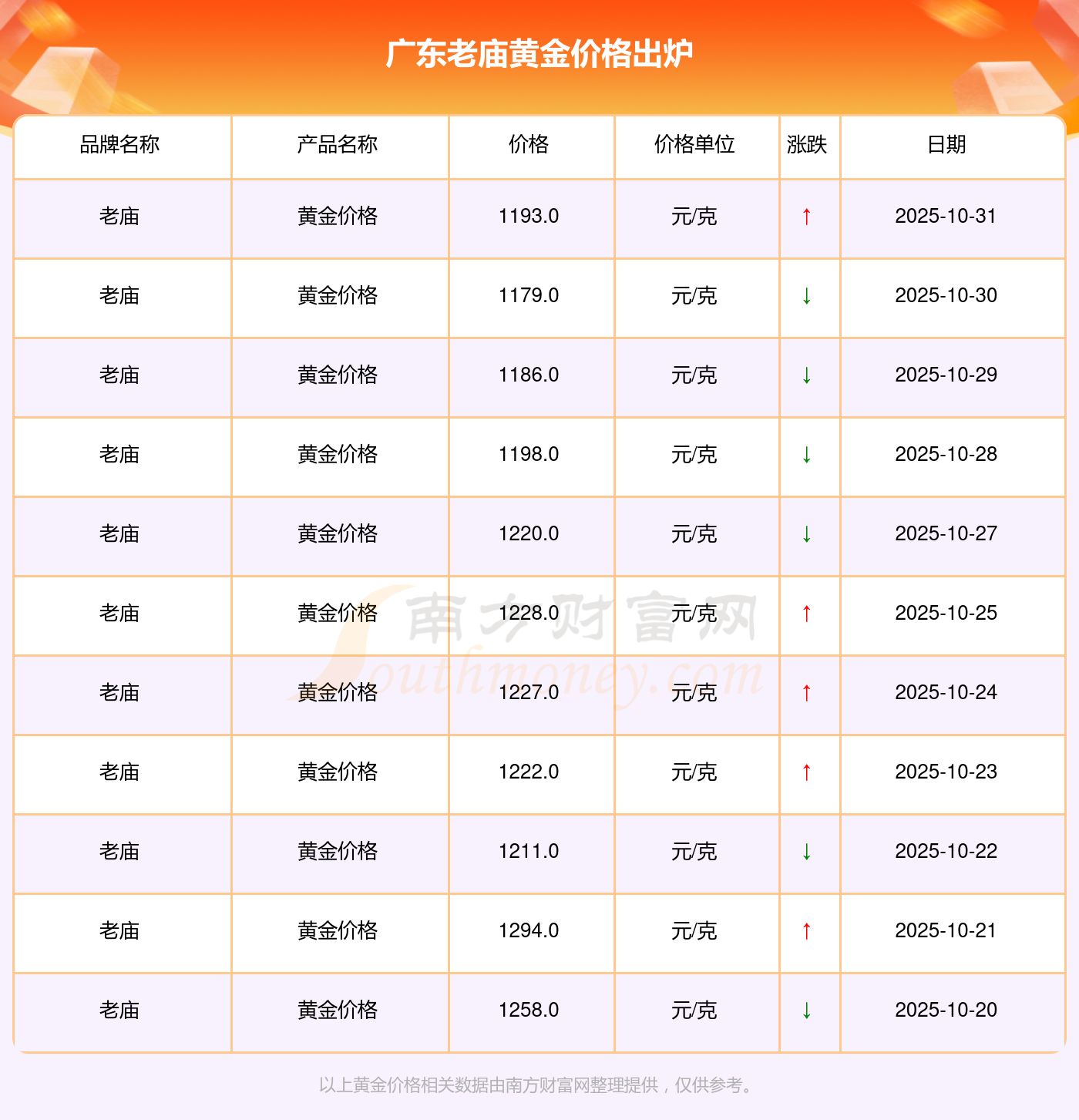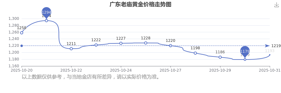 2025年11月2日,廣東老廟的黃金價(jià)格標(biāo)價(jià)達(dá)到 1193.0元/克。