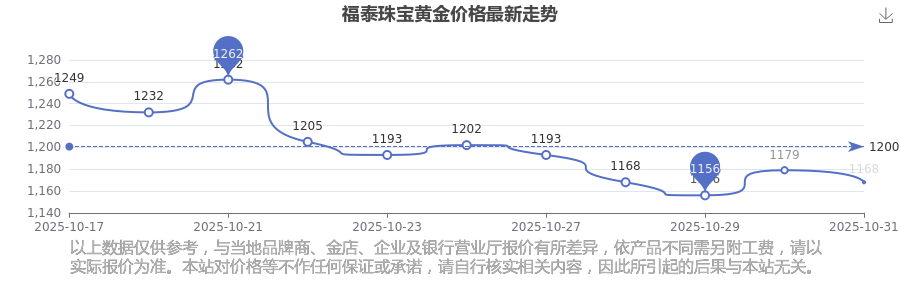 2025年11月2日福泰珠寶黃金價格為1168.0元/克。