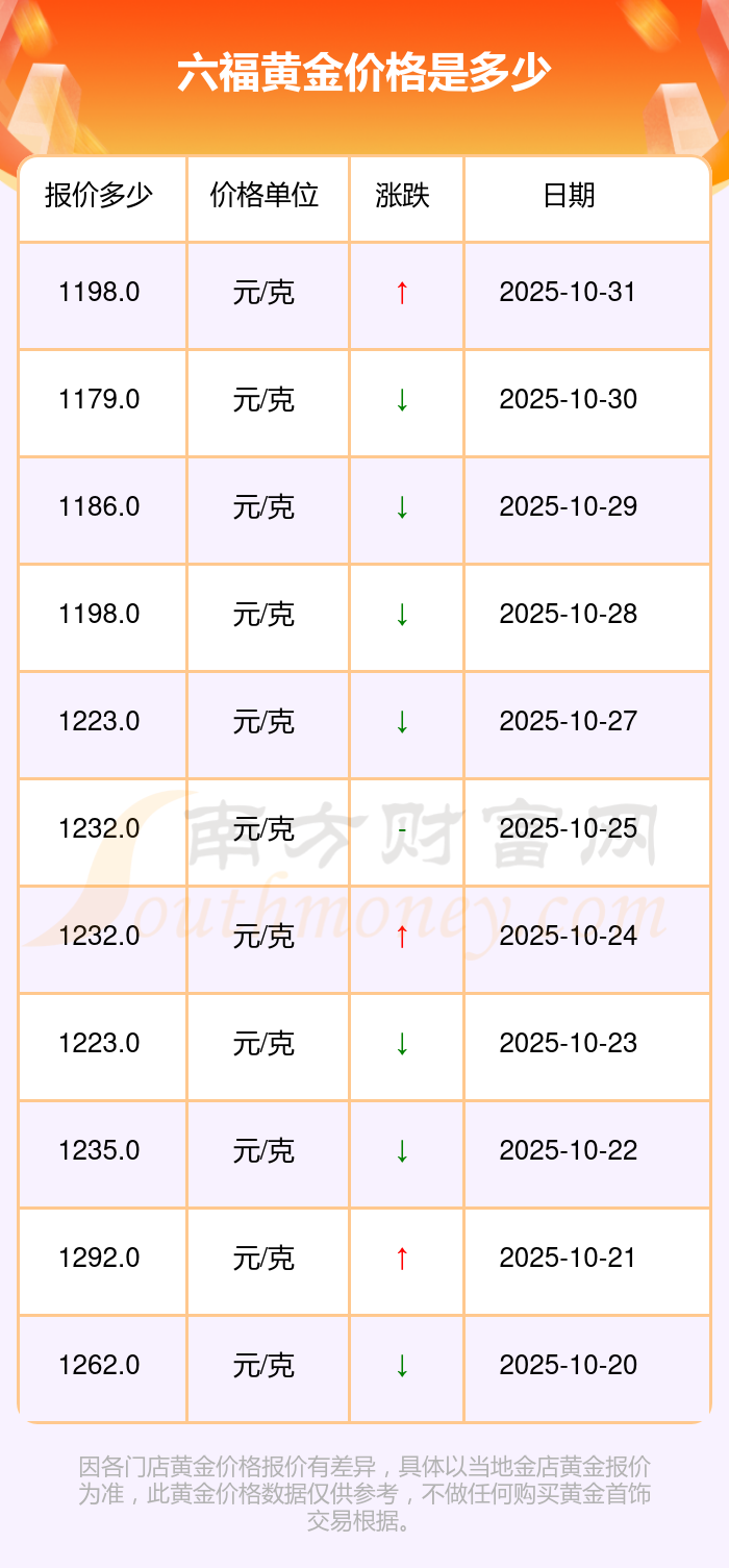 今日六福黃金價(jià)格最新是1198.0元/克。