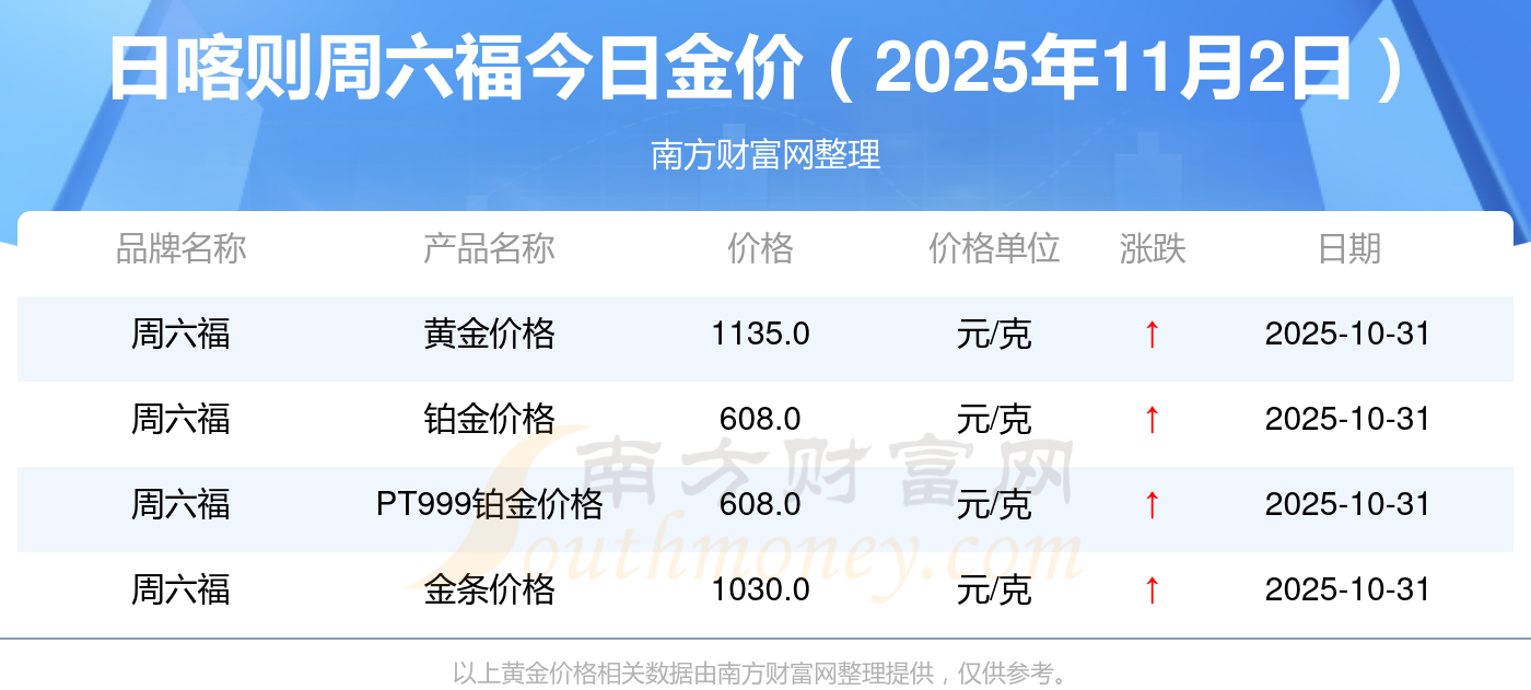 2025年11月2日日喀則周六福黃金的單價,一克為多少?黃金價格1198.0元/克,鉑金價格650.0元/克,飾品金價(內(nèi)地)1198.0元/克,黃金飾品(香港)44660.0,鉑金價格(香港)18640.0,金條價格(香港)40080.0,金條金價(內(nèi)地)1058.0元/克,黃金價格1200.0元/克,鉑金價格560.0元/克,足金價格1200.0元/克,黃金價格1135.0元/克。
