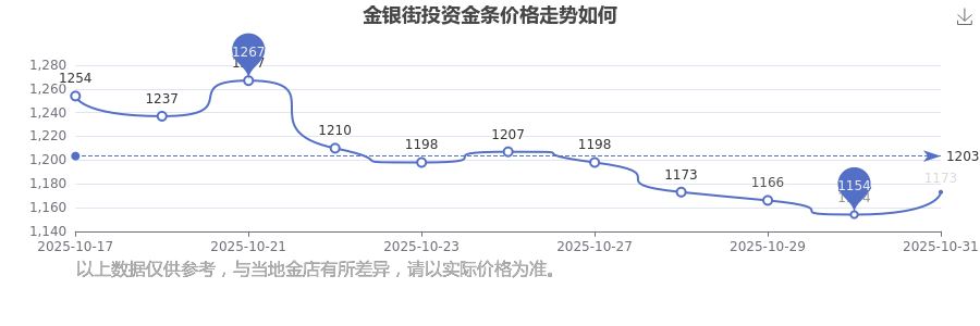 金銀街 投資金條在今日的最新價(jià)格顯示為1173.0元/克。
