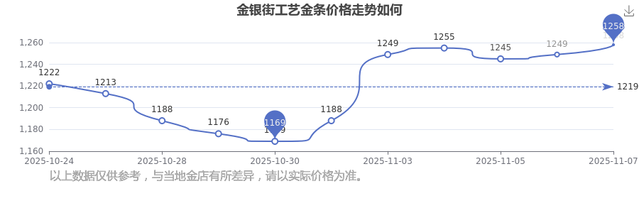 1258.0元/克成為金銀街今日 工藝金條的最新交易的價格。