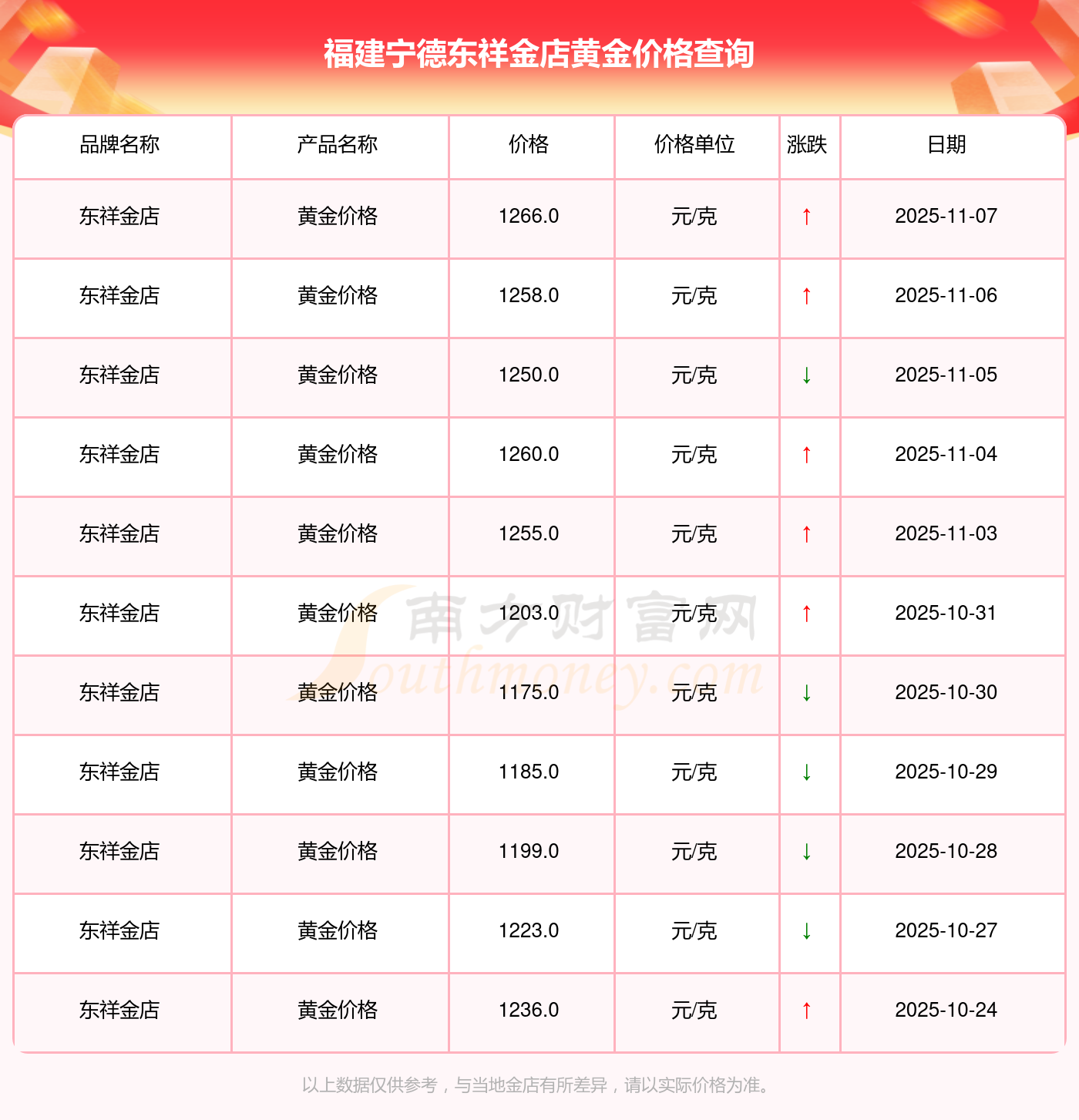 2025年11月8日,福建寧德東祥金店的黃金價(jià)格標(biāo)價(jià)達(dá)到 1266.0元/克。