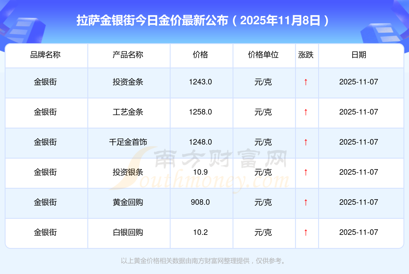 拉薩金銀街金價(jià)今日價(jià)格最新_拉薩金銀街黃金多少錢(qián)一克2025年11月8日,隨小編來(lái)了解一下詳情。