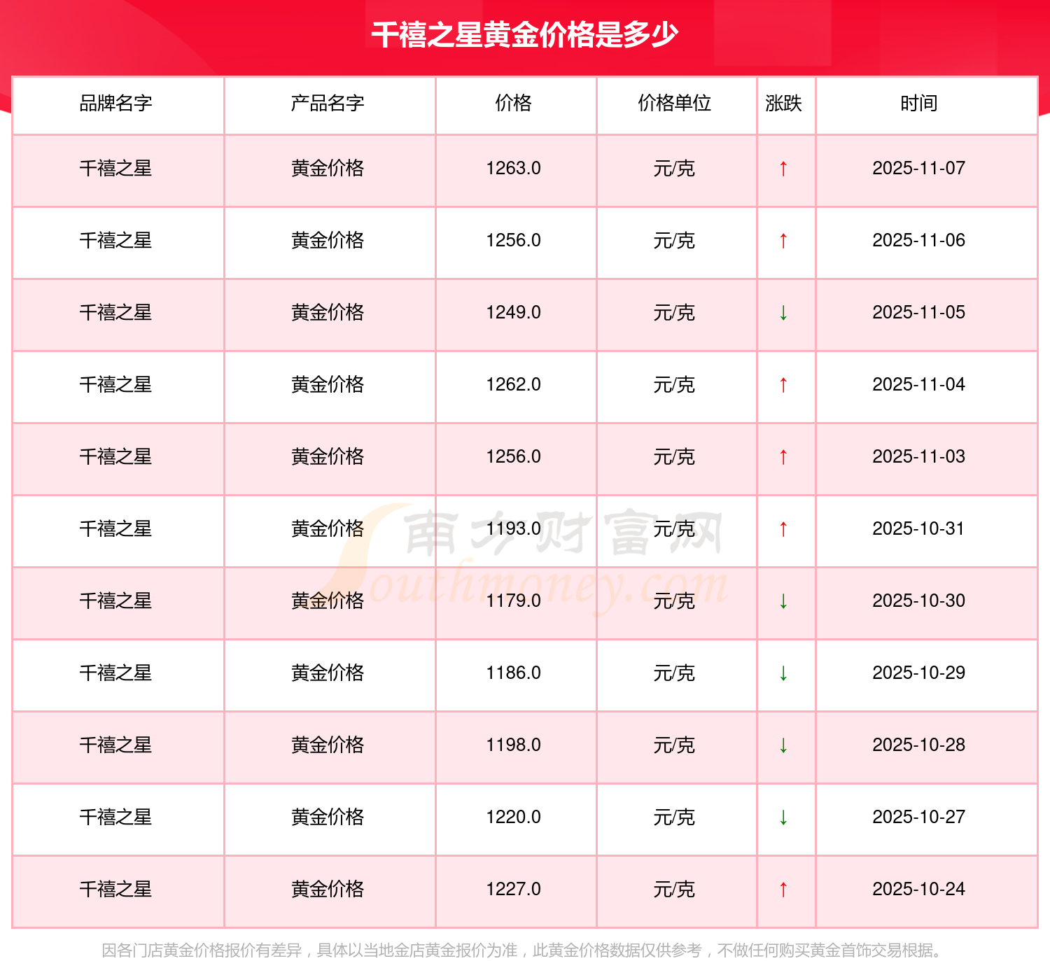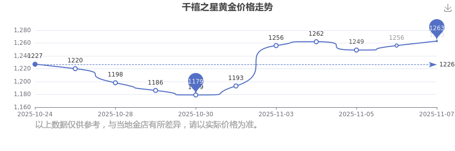 千禧之星今日黃金價(jià)格的最新市場(chǎng)行情價(jià)為1263.0元/克。