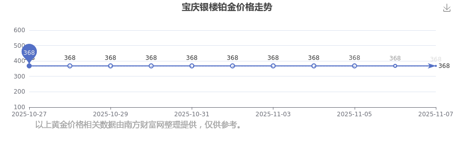 今日寶慶銀樓 鉑金價(jià)格最新的克重售價(jià)為368.0元/克。