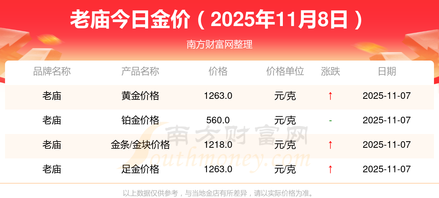 2025年11月8日寶泉錢幣、金蘭首飾、金蘭首飾、謝瑞麟、謝瑞麟、謝瑞麟、謝瑞麟、謝瑞麟、金銀街、金銀街、金銀街等各大金店品牌鉑金價格最新價格如下:寶泉錢幣銀條價格11.4元/克,金蘭首飾黃金價格1263.0元/克,金蘭首飾鉑金價格560.0元/克,謝瑞麟金條價格(內(nèi)地)1202.0元/克,謝瑞麟金飾價格(內(nèi)地)1268.0元/克,謝瑞麟黃金飾品(香港)44260.0,謝瑞麟鉑金飾品(香港)13080.0,謝瑞麟金條金價(香港)39960.0,金銀街投資金條1243.0元/克,金銀街工藝金條1258.0元/克,金銀街千足金首飾1248.0元/克。