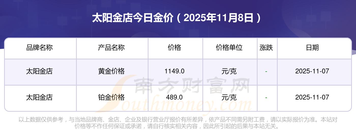 2025年11月8日寶泉錢幣、金蘭首飾、金蘭首飾、謝瑞麟、謝瑞麟、謝瑞麟、謝瑞麟、謝瑞麟、金銀街、金銀街、金銀街等各大金店品牌鉑金價(jià)格最新價(jià)格如下:寶泉錢幣銀條價(jià)格11.4元/克,金蘭首飾黃金價(jià)格1263.0元/克,金蘭首飾鉑金價(jià)格560.0元/克,謝瑞麟金條價(jià)格(內(nèi)地)1202.0元/克,謝瑞麟金飾價(jià)格(內(nèi)地)1268.0元/克,謝瑞麟黃金飾品(香港)44260.0,謝瑞麟鉑金飾品(香港)13080.0,謝瑞麟金條金價(jià)(香港)39960.0,金銀街投資金條1243.0元/克,金銀街工藝金條1258.0元/克,金銀街千足金首飾1248.0元/克。