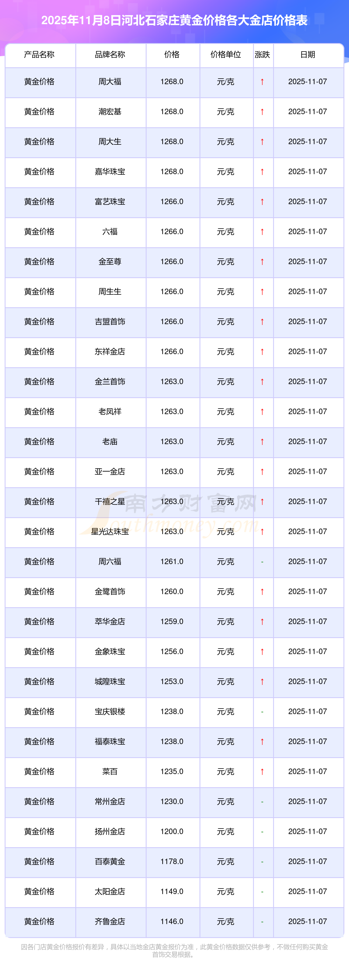 一、河北石家莊各金店黃金價(jià)格表來了