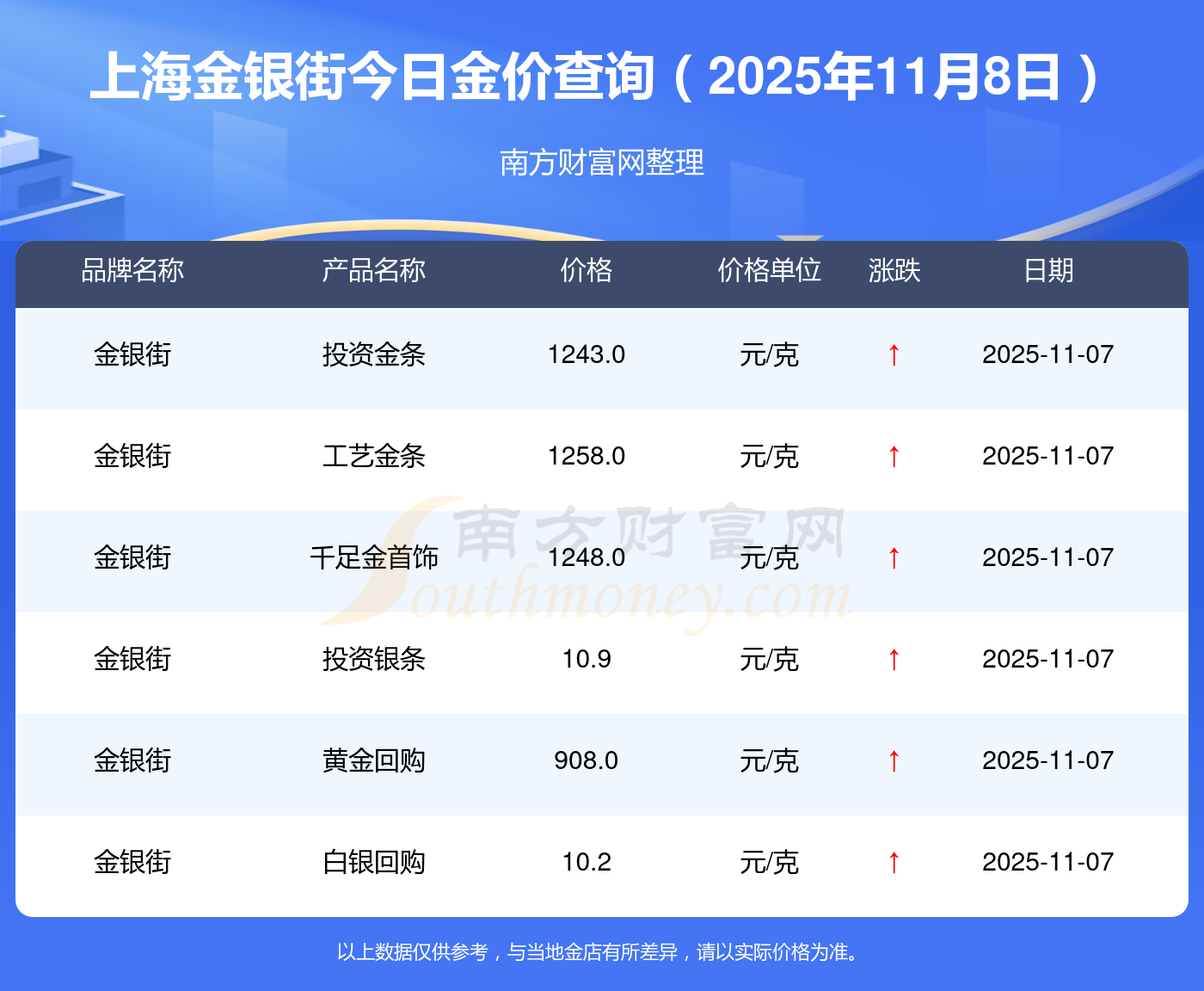 以上數(shù)據(jù)僅供參考,與當(dāng)?shù)亟鸬暧兴町,請以實際價格為準(zhǔn)。