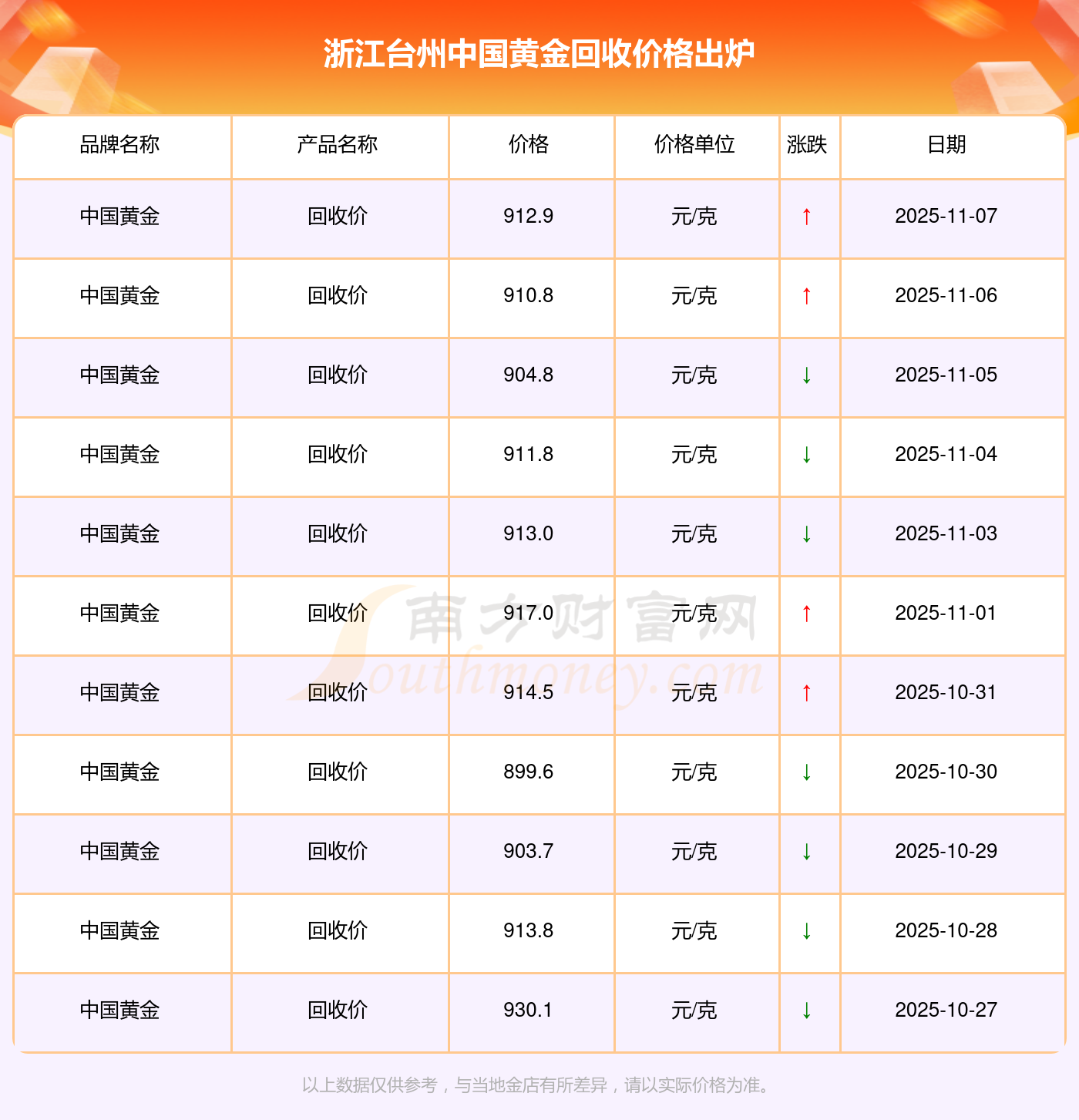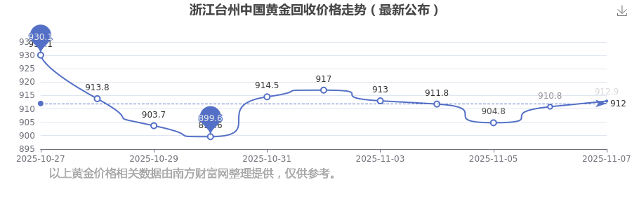912.9元/克的回收價格,是浙江臺州中國黃金在 2025年11月8日給出的。