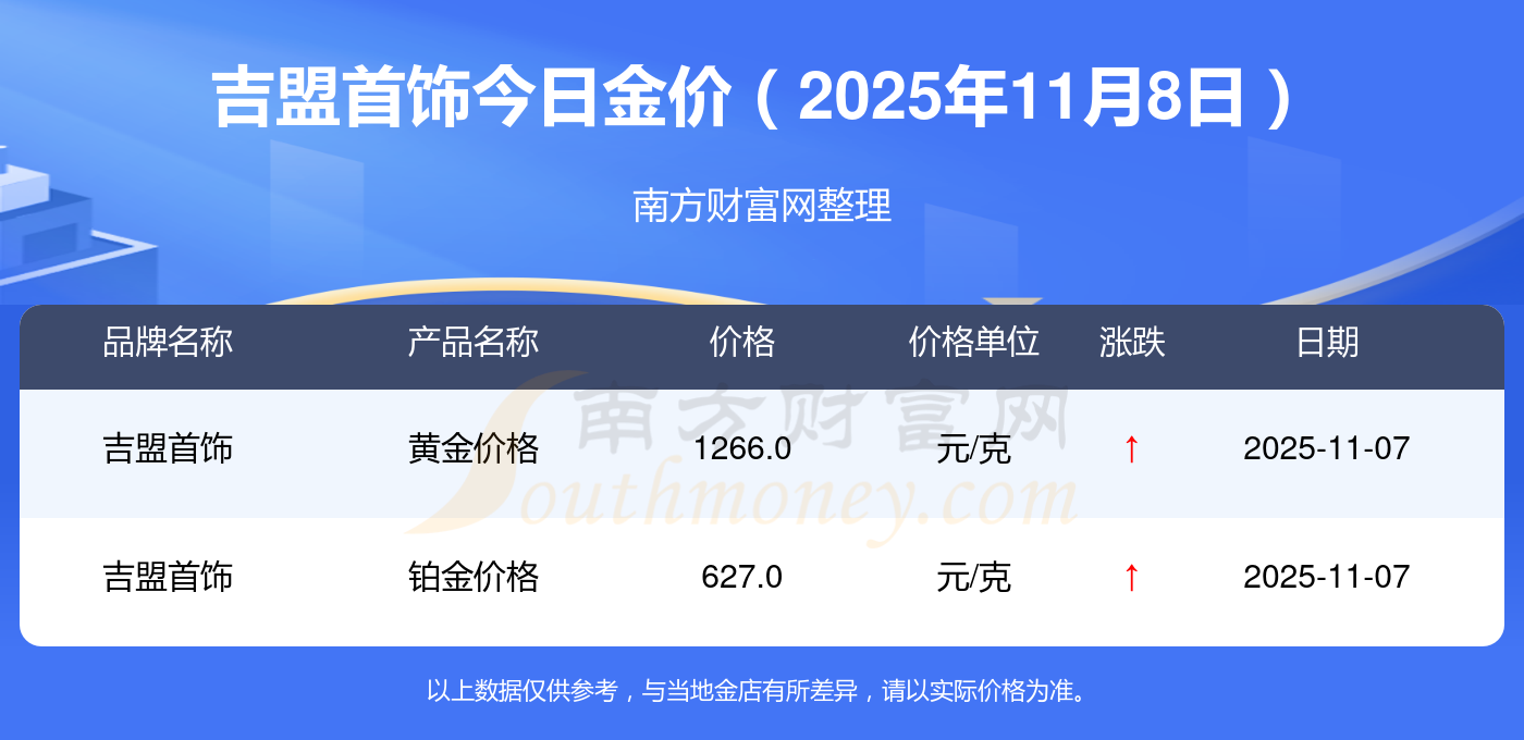 現(xiàn)在吉盟首飾黃金價(jià)格是多少錢1克_2025年吉盟首飾今日金價(jià)是多少錢一克,最新吉盟首飾查詢,2025年11月8日吉盟首飾黃金價(jià)格現(xiàn)在每克多少錢?最新吉盟首飾黃金價(jià)格報(bào)價(jià)公布,一起來看看吧!