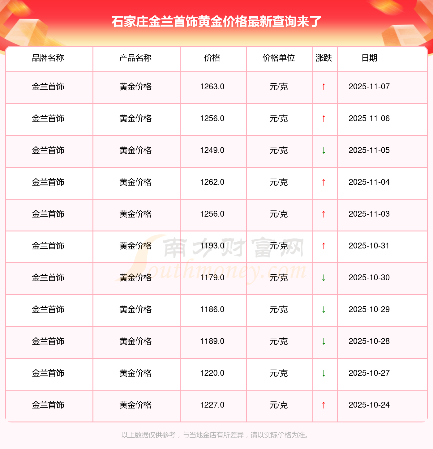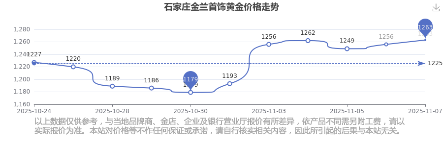今日石家莊金蘭首飾黃金價格為1263.0元/克。