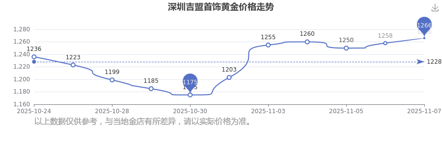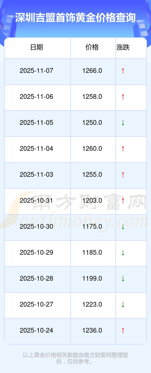 深圳吉盟首飾黃金價格在 2025年11月8日,其市場價格為 1266.0元/克。