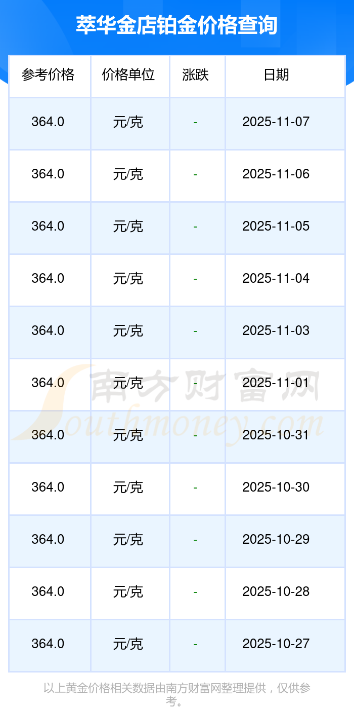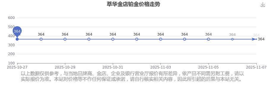今日萃華金店 鉑金價格的最新定價為364.0元/克。