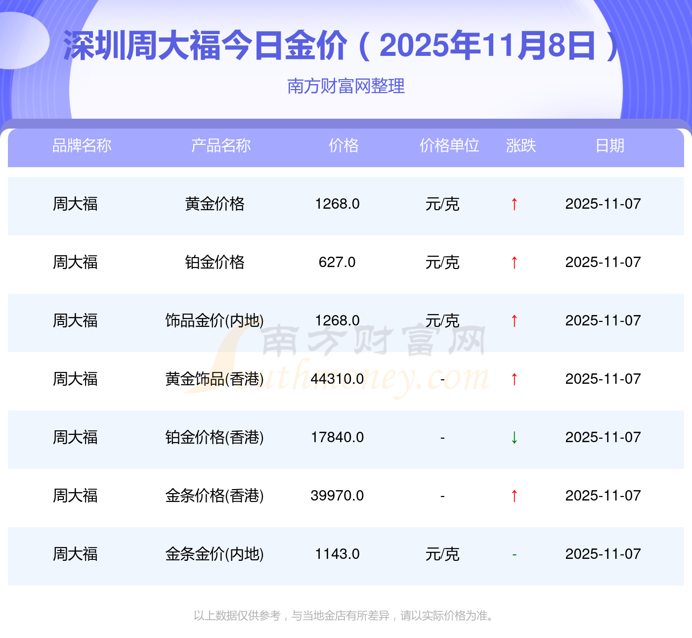 深圳周大福金價今日價格: