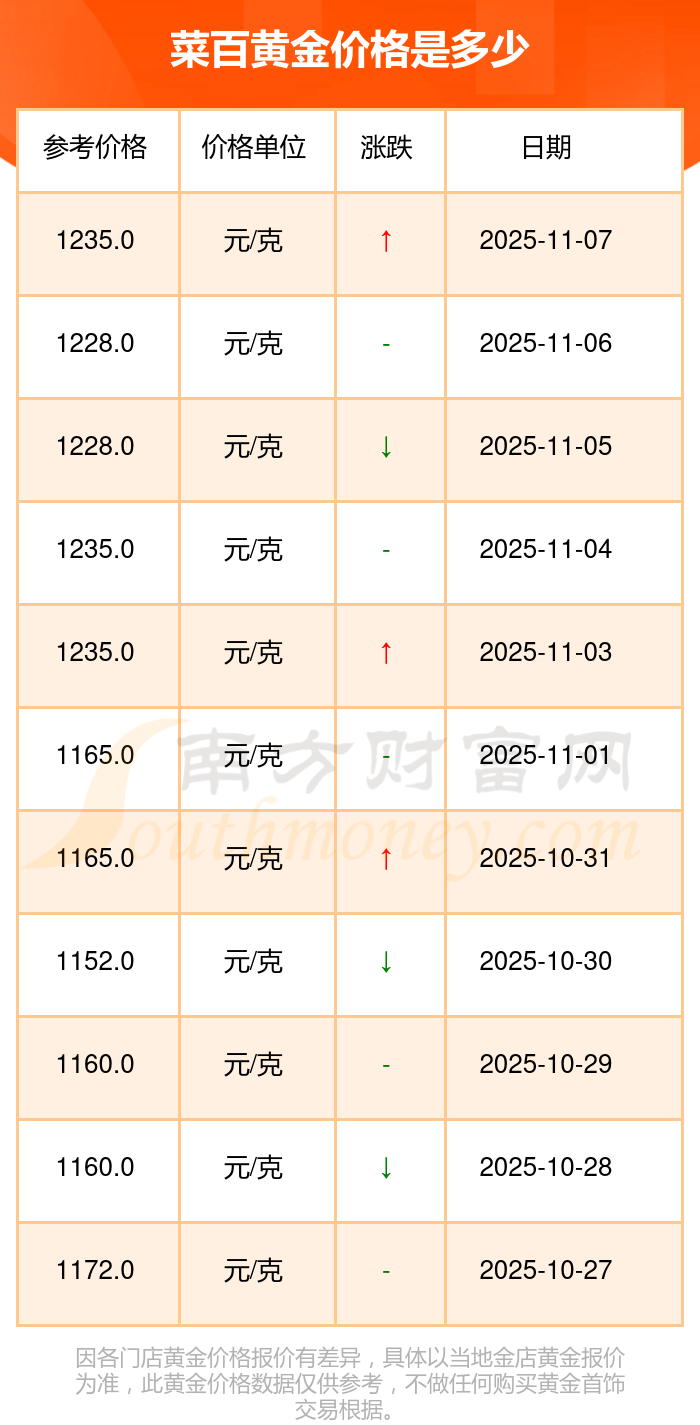 想查詢今日黃金價格,當(dāng)下黃金一克具體售價幾何?一般情況下黃金每克的價位是多少左右?2025年11月8日菜百黃金價格是1235.0元/克。