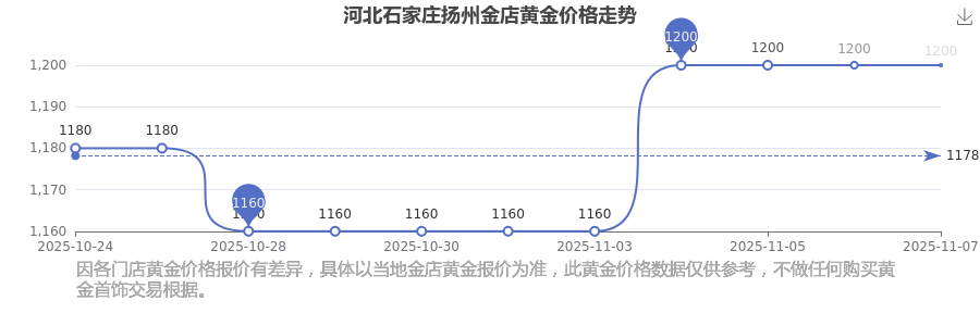 河北石家莊揚(yáng)州金店今日黃金價格最新公布(當(dāng)下購買一克黃金的價格是多少)?今日河北石家莊揚(yáng)州金店黃金價格查詢,今日河北石家莊揚(yáng)州金店黃金價格是1200.0元/克。