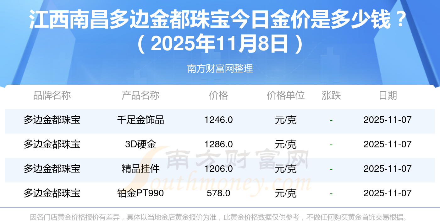 江西南昌最新多邊金都珠寶今日金價(jià)多少錢(qián)一克?(2025年11月8日)